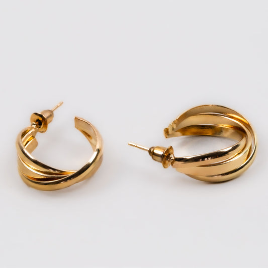 Cercei rotunzi texturați în 3 straturi împletite - Auriu
