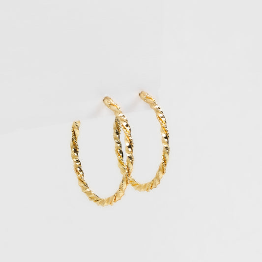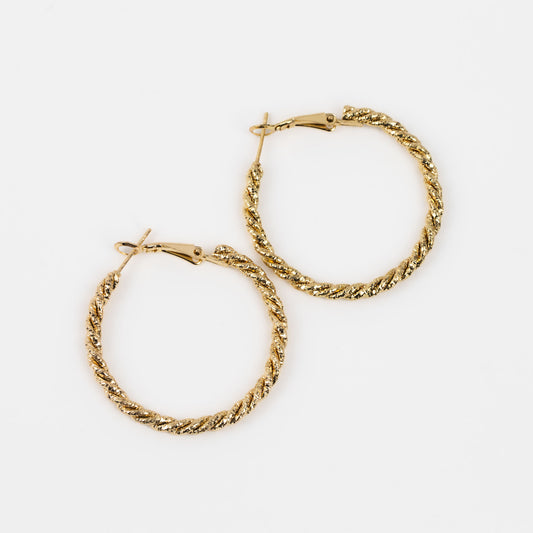 Cercei rotunzi spiralați cu textură granulată - Auriu