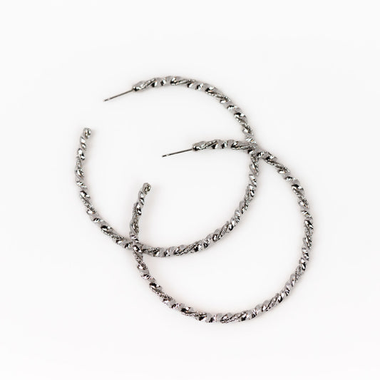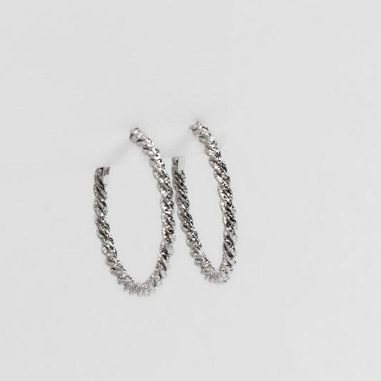 Cercei rotunzi spiralați cu textură granulată - Argintiu