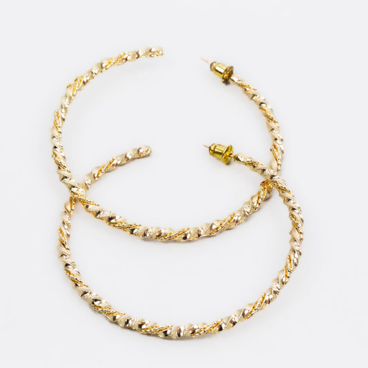 Cercei rotunzi spiralați cu textură crestată - Auriu elegant