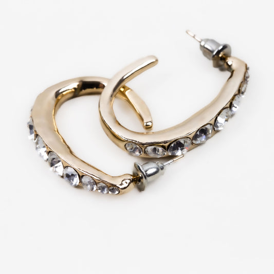 Cercei verigă cu pietre strălucitoare și textura fină - Auriu elegant