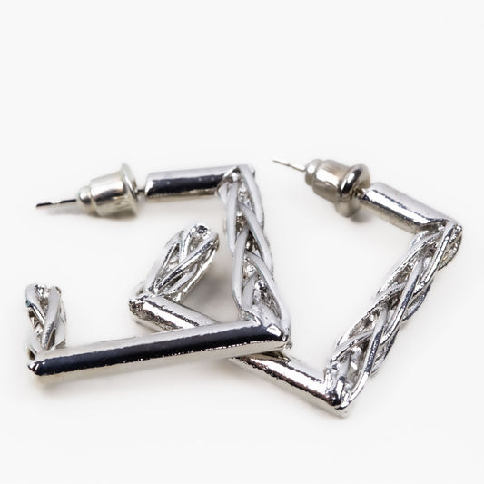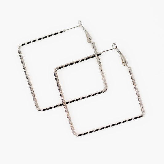 Cercei verigă pătrați cu textură sculptată - Argintiu infinit