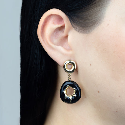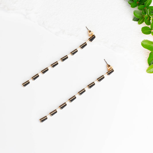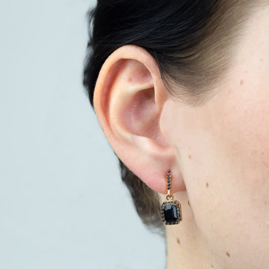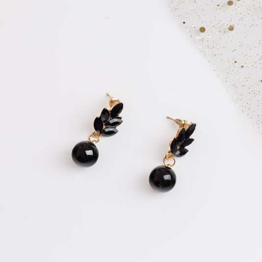 Cercei cu frunzuliță aurie și ștrasuri negre