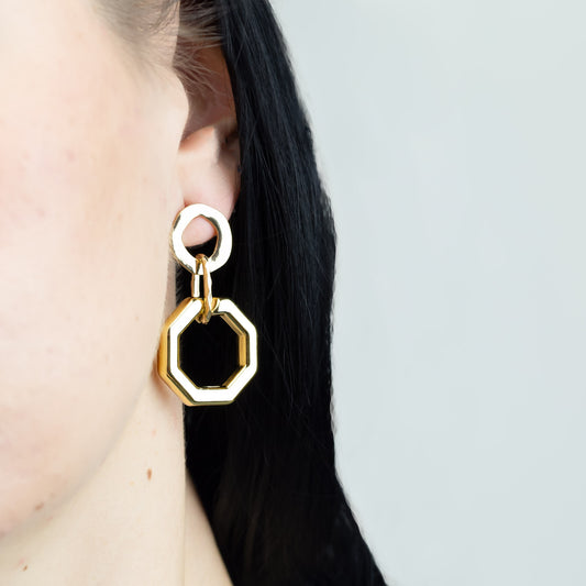 Cercei cu accent auriu și romb siliconat - Portocaliu Deschis