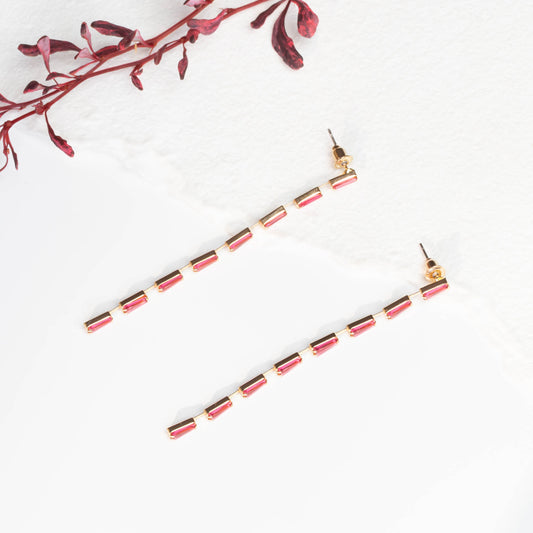 Cercei lungi și ușori cu pietre colorate - Roșu