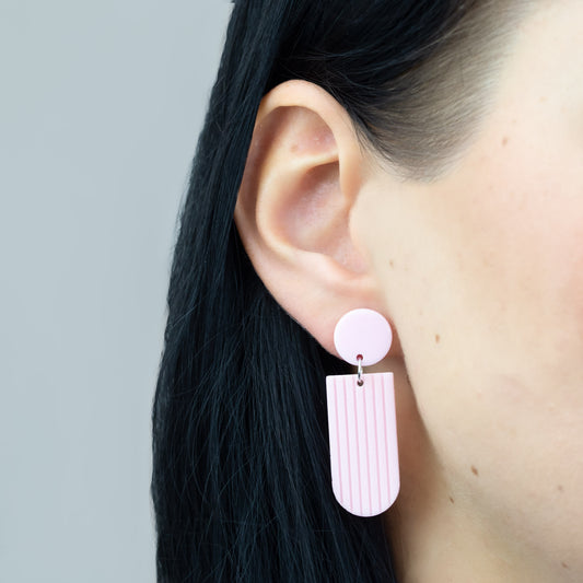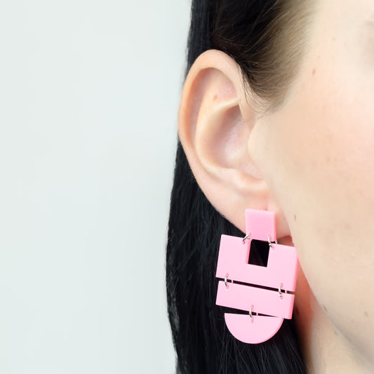 Cercei cu accent auriu și romb siliconat - Roz Deschis