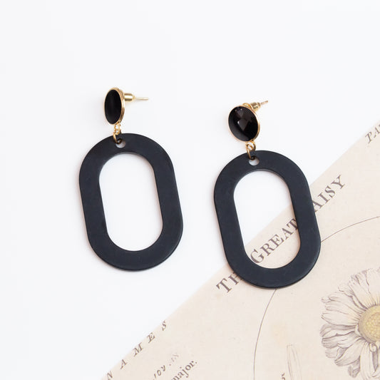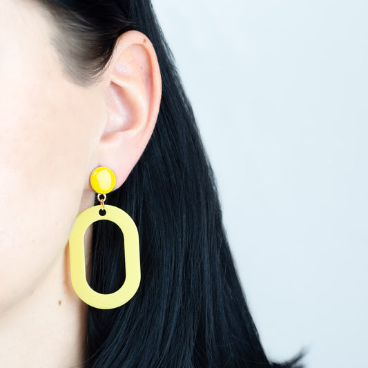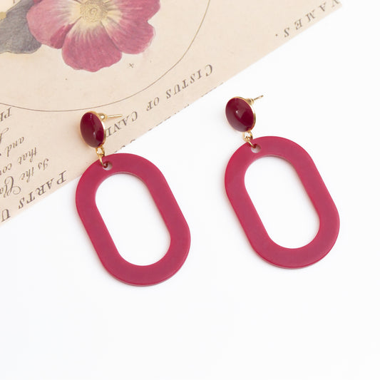 Cercei cu verigă ovală și accent color - Albastru Deschis