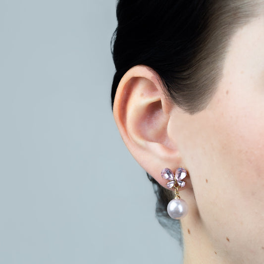 Cercei eleganți cu ștrasuri și piatră strălucitoare