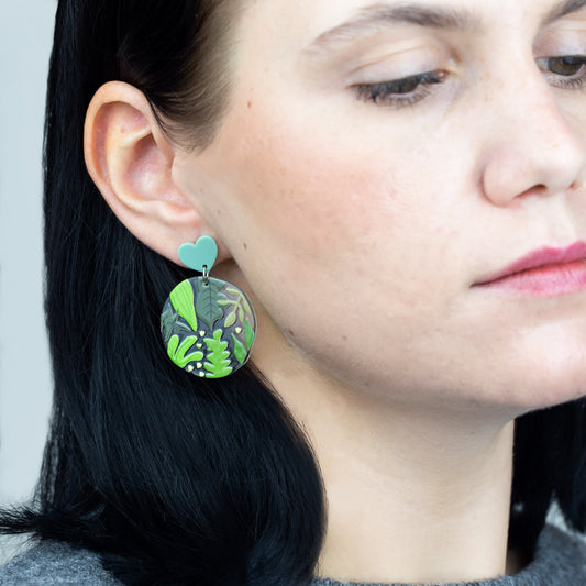 Cercei tip verigă lați cu textură de silicon - Verde Mentă