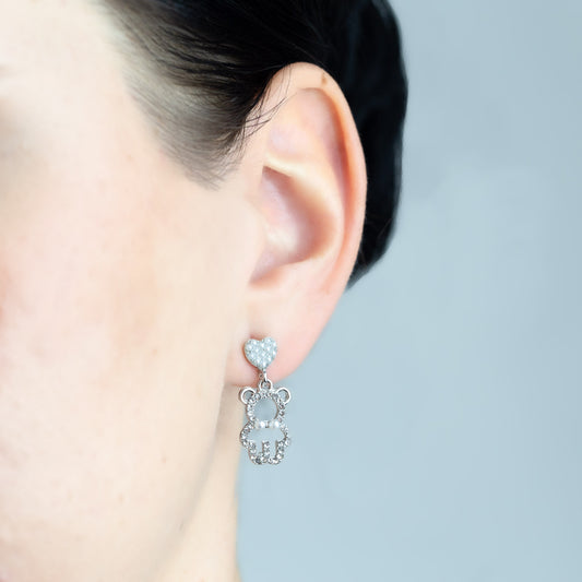 Cercei ursuleț cu biluțe și ștrasuri - Argintiu