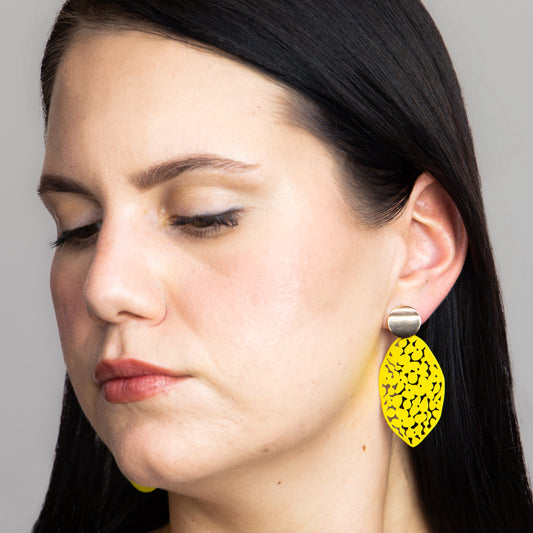 Cercei foarte faini cu petale mari siliconate și accent auriu - Galben