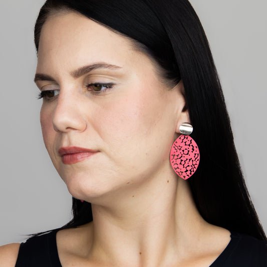 Cercei cu solzi siliconați și accent auriu - Fucsia