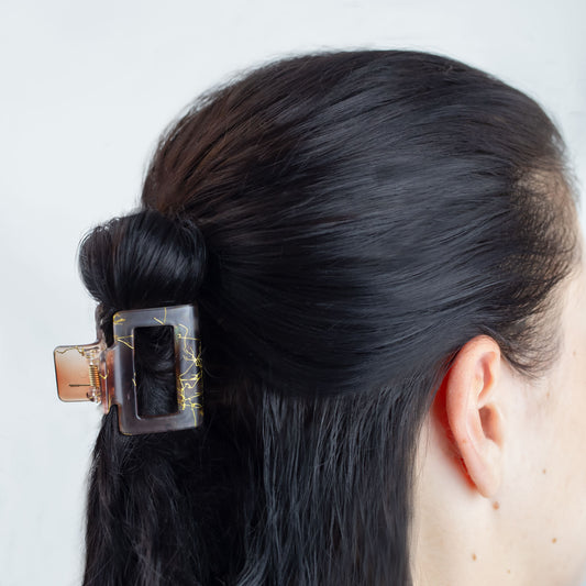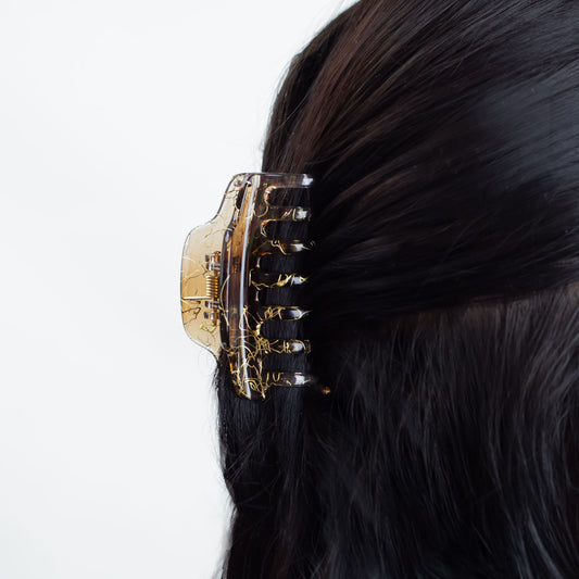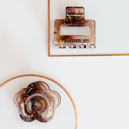 Set 2 clame păr beauty cu accente aurii, textură translucidă - Maro