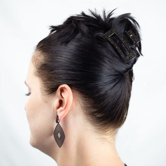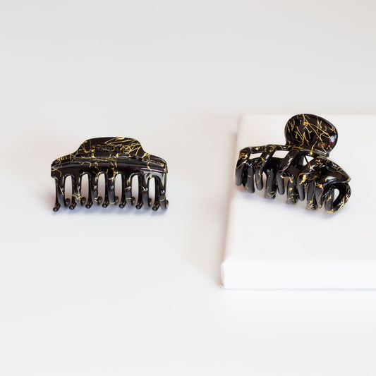 Set 2 clame păr cu accente aurii, textură mată - Negru