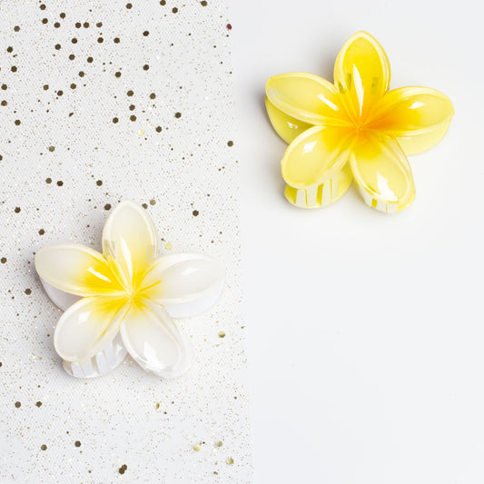 Set 2 clame păr în formă de floare Hawaii - Galben, Alb