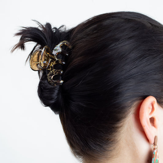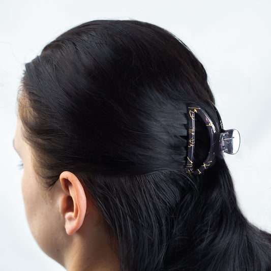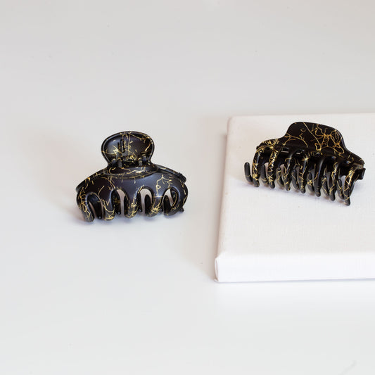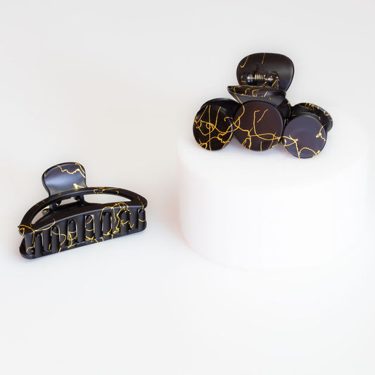 Set 2 clame păr cu accente aurii, textură lucioasă - Negru