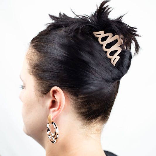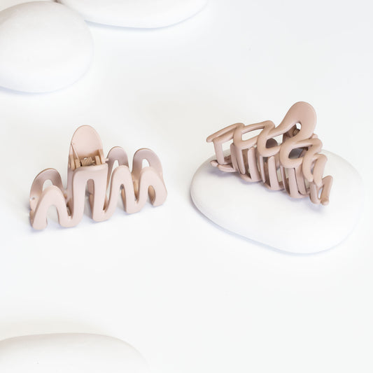 Set 2 clame păr progressive lines cu textură de silicon - Bej