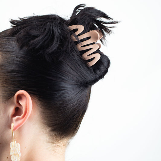Clame de păr medii cu forme simetrice și textură de silicon, set 2 buc - Maro