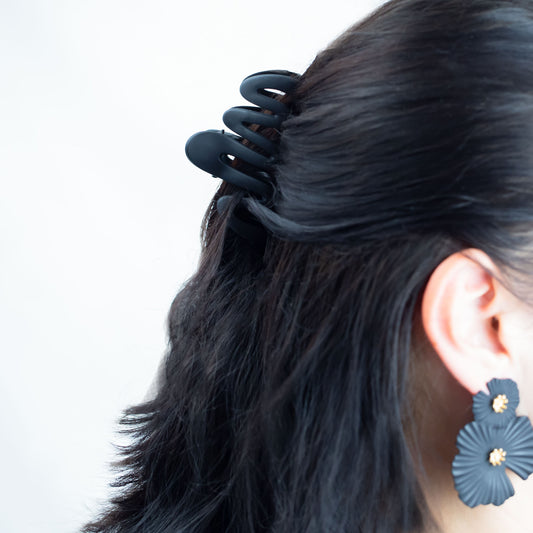 Clame de păr medii cu texturi mixte, set 2 buc - Negru