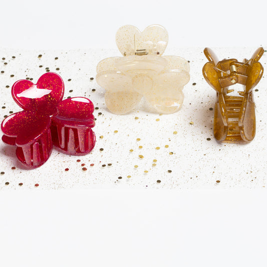 Clame de păr medii butterfly cu textură lucioasă, set 2 buc - Basic Mix