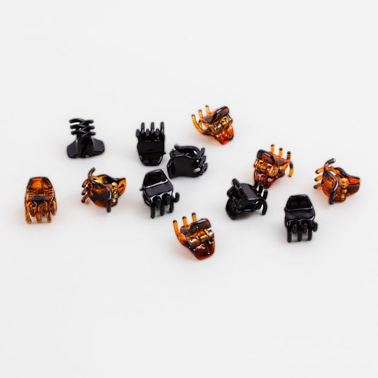 Clame de păr extra mici simple cu textură lucioasă, set 12 buc - Negru, Maro