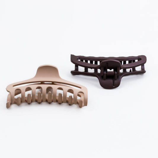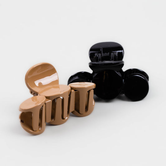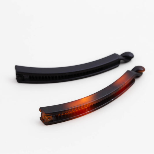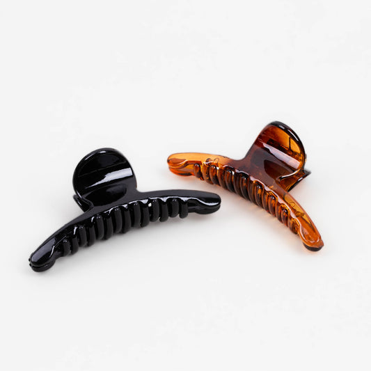 Clame de păr tip banană simple cu textură mată, set 2 buc - Negru, Maro