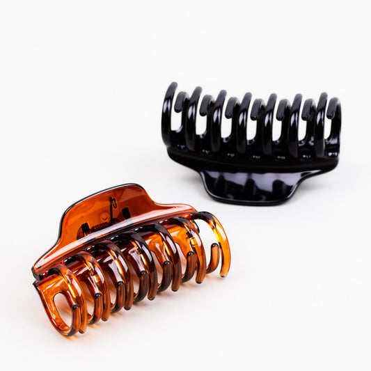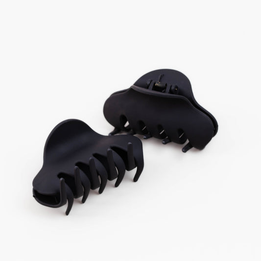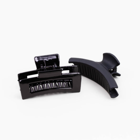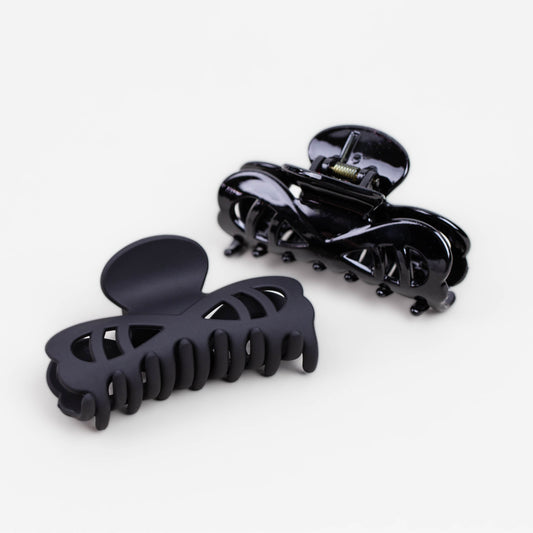 Clame de păr medii cu texturi mixte, set 2 buc - Negru