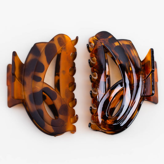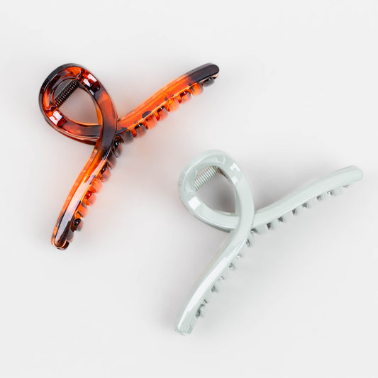 Clame de păr mari cu formă de cheie egipteană și textură lucioasă, set 2 buc - Maro, Verde