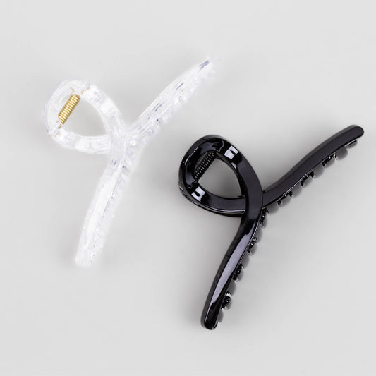 Clame de păr mari cu formă de cheie egipteană și textură lucioasă, set 2 buc - Negru, Transparent