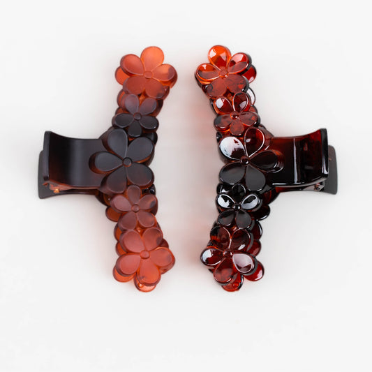 Clame de păr mari cu formă de floricele și texturi mixte, set 2 buc - Maro