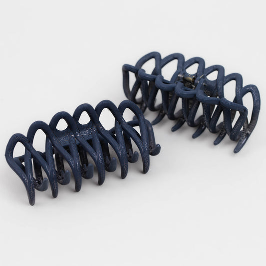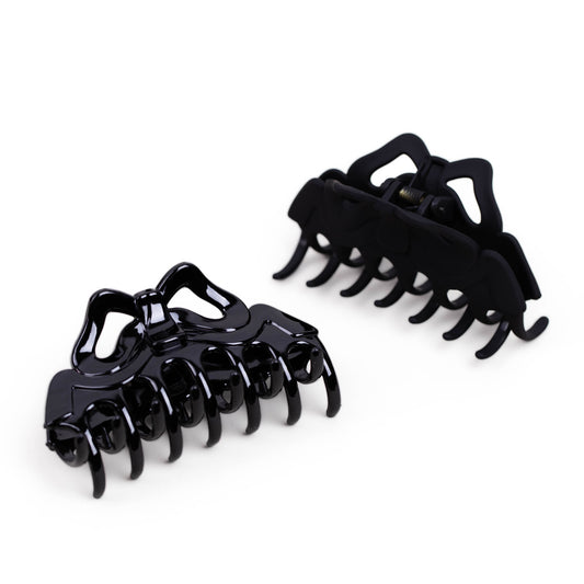 Clame de păr mari cu forme simetrice și texturi mixte, set 2 buc - Negru