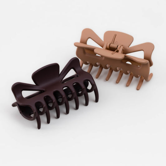 Clame de păr mari cu formă de fundiță și textură de silicon, set 2 buc - Maro Mix