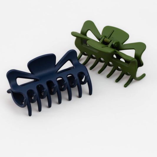 Clame de păr mari cu formă de fundiță și textură de silicon, set 2 buc - Verde, Albastru