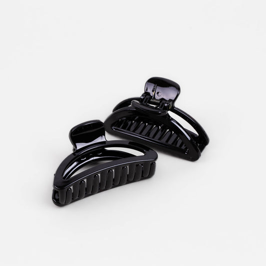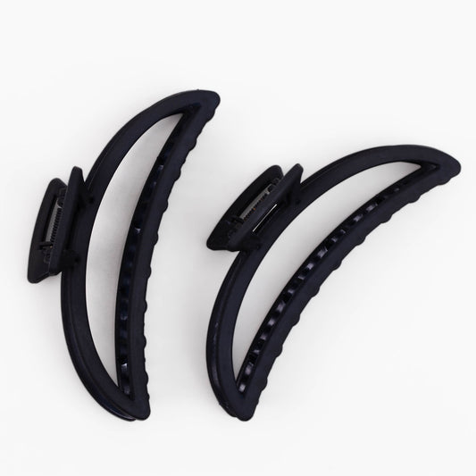 Clame de păr mari cu formă de semilună și textură de silicon, set 2 buc - Negru