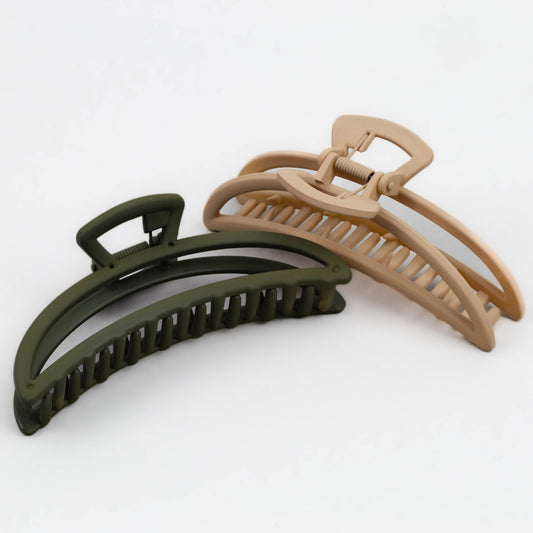Clame de păr mari cu formă de semilună și textură de silicon, set 2 buc - Verde, Bej