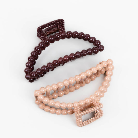 Clame de păr mari cu formă de semilună și textură lucioasă cu bule, set 2 buc - Maro, Bej