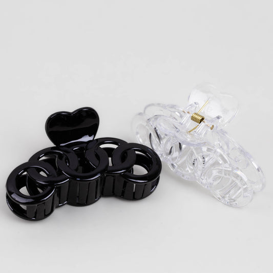 Clame de păr tip banană cu formă de fundiță și inimi, textură lucioasă, set 2 buc - Negru