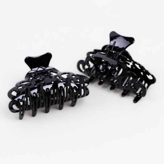 Clame de păr mari cu forme decupate și textură lucioasă, set 2 buc - Negru