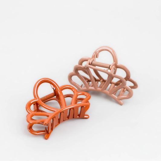 Clame de păr mari în formă de coroană cu textură lucioasă, set 2 buc - Portocaliu, Bej