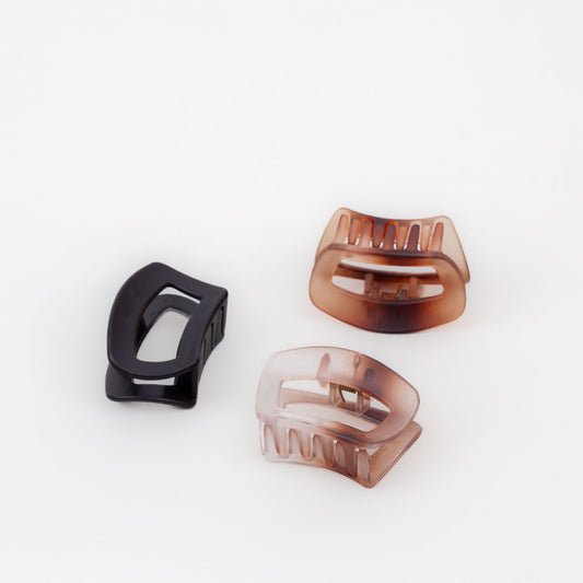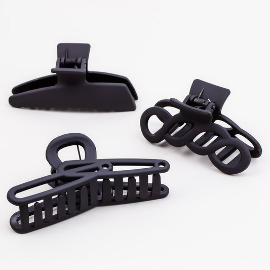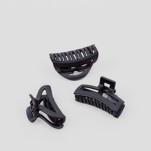 Clame de păr medii cu forme diverse și textura mată, set 3 buc - Negru