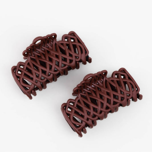 Clame de păr mari cu formă împletită și texturi mixte, set 2 buc - Maro