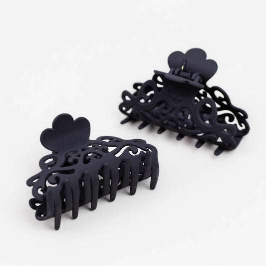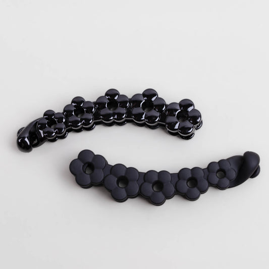 Clame de păr tip banană cu forme de flori și texturi mixte, set 2 buc - Negru