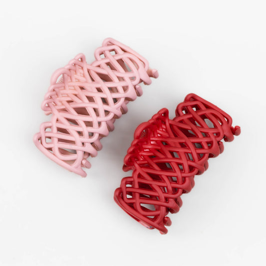 Clame de păr mari în stil vintage cu textură de silicon, set 2 buc - Roz, Roșu