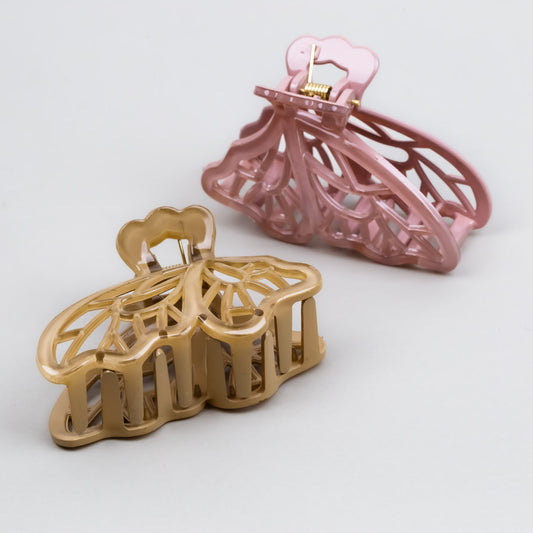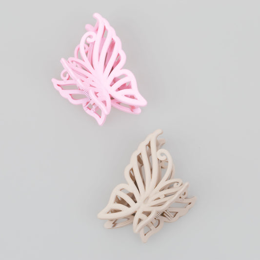 Clame de păr medii în formă de fluture cu textură de silicon, set 2 buc - Roz, Bej