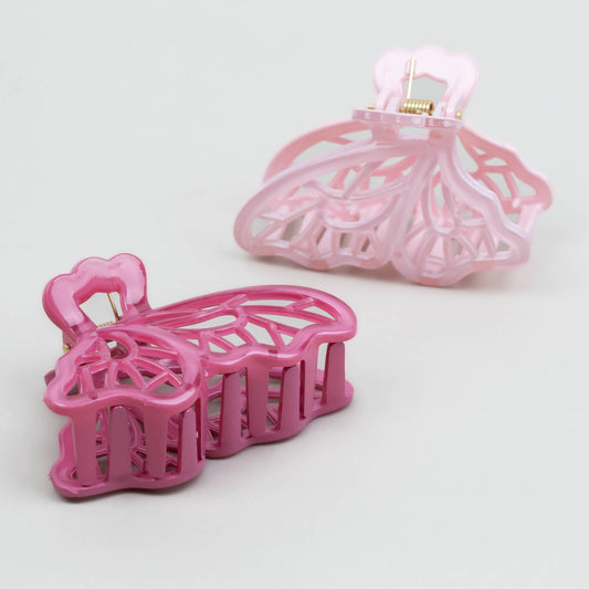 Clame de păr medii butterfly cu textură lucioasă, set 2 buc - Roz Mix