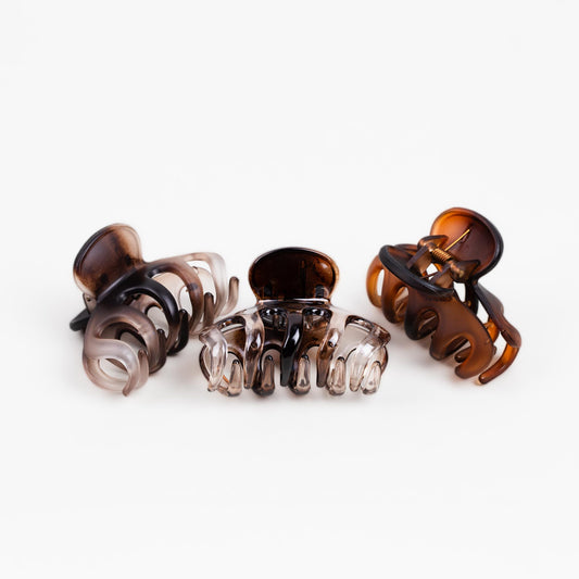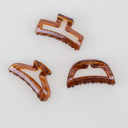 Clame de păr medii cu forme diverse și textura lucioasă, set 3 buc - Maro Translucid