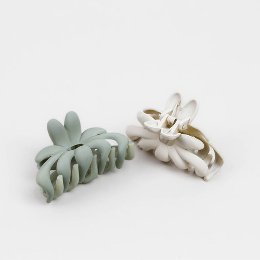 Clame de păr medii cu formă de floare și dinți mari, textură de silicon, set 2 buc - Alb, Verde