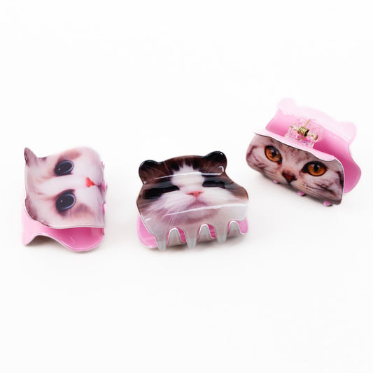 Clame de păr medii cu formă de pisică și textură lucioasă, set 3 buc - Cat Mix