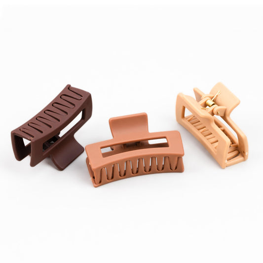 Clame de păr medii cu formă dreptunghiulară și textură de silicon, set 3 buc - Caramel Mix