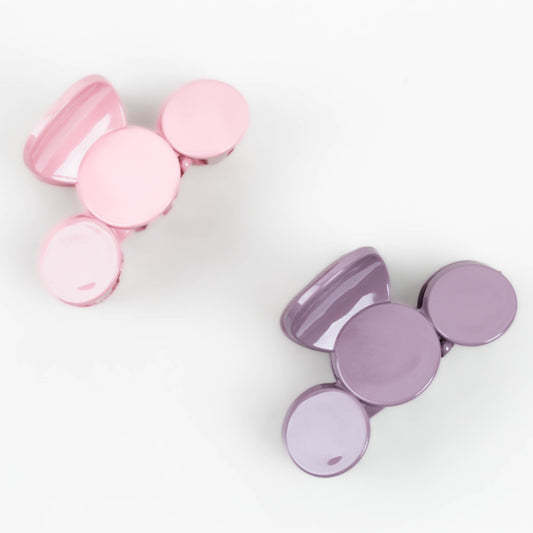 Clame de păr medii cu forme de cerc și textură lucioasă, set 2 buc - Mov, Roz